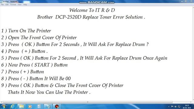 Brother DCP 2520D Printer Replace Toner Error Solution