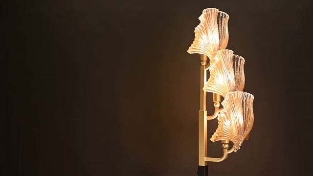 Ventaglio — в переводе с итальянского «веер», это линия светильников выполненная в популярном стиле Ар-деко. Роскошная и изящная одновременно она станет изумительным украшением интерьера. Декоративный стеклянный элемент в виде листка гинкго билоба декорирован тонкими расходящимися от центра гранями, на краях листа создан эффект золотого градиента.