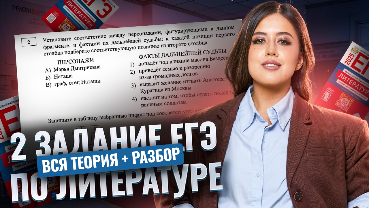 👉 Забирай мои бесплатные полезные файлы «100 тем по лирике» и «100 тем для сочинения №11» для подготовки к ЕГЭ по литературе из закрепа в телеграм-канале: https://short.umschool.net/rt_tgknzva В этом видео мы подробно разберём второе задание ЕГЭ по литературе и объясним, как правильно его решать, чтобы получить максимальный балл. Рассмотрим все теоретические аспекты, которые помогут вам уверенно справляться с этим заданием, и разберём ключевые моменты, на которые стоит обратить внимание. После этого видео ты будешь точно знать, как не допустить ошибок и успешно выполнить задание на экзамене! Я Фариша Князева, готовлю 11-классников к ЕГЭ по литературе в онлайн-школе «Умскул». 1 426 моих учеников уже сдали ЕГЭ на сотку, а ещё 4 728 — на 90+. Хочешь так же? 😏 🍓 Готовься к ЕГЭ вместе с Умскул уже сейчас, чтобы точно сдать на максимум. Переходи по ссылке, чтобы записаться или задать вопрос: https://short.umschool.net/rt_lit_ege Мы составим для тебя персональный трек обучения по 4 предметам так, что ты не выгоришь, и поможем поступить в вуз, о котором ты мечтаешь! С нашими преподавателями ты точно поймёшь и полюбишь предмет и узнаешь обо всех подводных камнях экзаменов. Немного об Умскул: — Каждый 10-й стобалльник России в 2024 году готовился в Умскул. — Подготовили 4 000+ стобалльников. — 41 000+ наших учеников сдали ЕГЭ на 90+. — За 8 лет подготовили 500 000+ учеников к ЕГЭ и ОГЭ. Если ты в 10-м классе, тебе поможет моя коллега Анастасия Ахматова — она готовит 10-классников к ЕГЭ: https://short.umschool.net/ext_ahmat 🔔 Подписывайся на канал, ставь лайк и жми на колокольчик, чтобы не пропустить новые видео! #умскул #егэ #литература