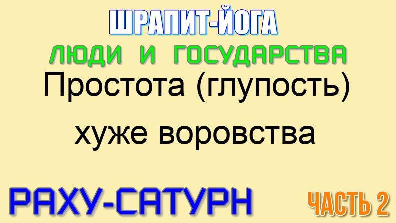 ▶️ ШРАПИТ ЙОГА (САТУРН + РАХУ) ◀️ ? ГОРОСКОП ЧЕЛОВЕКА ИЛИ ГОСУДАРСТВА ? ❗ЧАСТЬ 2❗ ?В видео затронуты следующие темы и вопросы: ✅ Особенности проявления ШРАПИТ-ЙОГИ в контексте влияния на человека или политику государства. ✅ Природа Сатурна и Раху. Почему данная комбинация (РАХУ + САТУРН) является сильно противоречивой и антагонистической? ✅ Сильные и слабые стороны ШРАПИТ-ЙОГИ. Какие опасности таит в себе? ✅ Почему ШРАПИТ-ЙОГА нередко склоняет к нетрадиционным ценностям и ориентации? Какие понятия могут быть у такого человека или государства и есть ли они вообще? ✅ Простота хуже воровства? Влияние Раху на Сатурн и наоборот. ✅ Пороки, к которым МОЖЕТ склонить человека ШРАПИТ-ЙОГА, если человек деградирует. ✅ Мания величия или пограничное расстройство личности. Опасные игры с границами (внутренними и внешними). Желание побыстрее захватить власть или расширить сферы своего влияния. Карьеристы и оппортунисты. ✅ Наглость – вторая радость или чрезмерная забитость. В чём причина нестабильного поведения? ✅ ШРАПИТ-ЙОГА – комбинация «глобалистов», которые не понимают и не считаются с законами природы, вследствие чего отхватывают по полной программе. Много хочешь – много получишь. ✅ Проблемы с воспитанием и невзгоды в семье. Путь «злобного завистливого гнома» или человека благородного? ✅ В чём сила, брат? В силе или в правде? Что демонстрируют своим образом жизни и мышлением НЕКОТОРЫЕ представители ШРАПИТ-ЙОГИ? Сила есть, ума не надо? ✅ Почему люди со ШРАПИТ-ЙОГОЙ склонны проявлять неуважение к старшим и своим учителям? Откуда берутся проклятия по большому счёту? ✅ Кармические болезни с точки зрения аюрведы. Неуважение к мудрости и законам природы. ✅ Отношение к труду у людей со ШРАПИТ-ЙОГОЙ. ✅ Мои добрый совет представителям ШРАПИТ-ЙОГИ. Как не нарубить дров? #шрапитйога #джйотиш #сатурн #раху #ведическаяастрология #йогивастрологии #соединениепланет #лжегуру #астролог