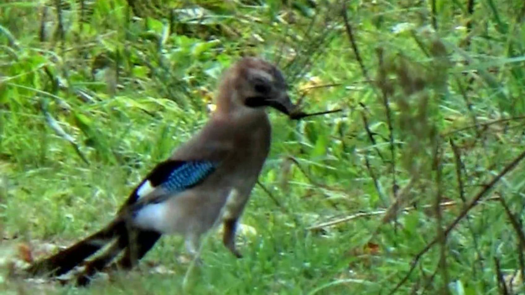 Сойка пересмешница на лесной тропинке