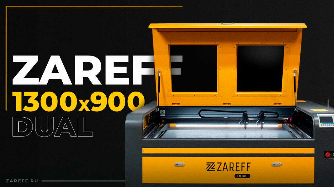 Лазерный СО2 станок с двумя рабочими головами: Обзор Zareff DUAL с рабочим полем 1300x900 мм
