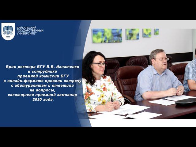 ВРИО Ректора ФГБОУ ВО "БГУ" В.В. Игнатенко и сотрудники Приемной комиссии БГУ в онлайн-формате провели встречу с абитуриентами и ответили на вопросы, касающиеся приемной кампании 2020 года.