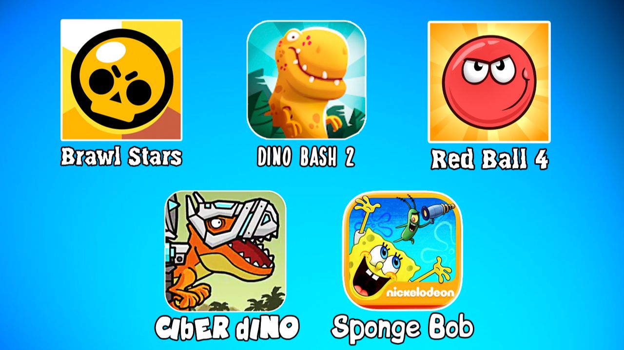 бравл старс, красный шарик 4, губка боб, Дино беш 2, механические динозавры - сборник лучших игр.