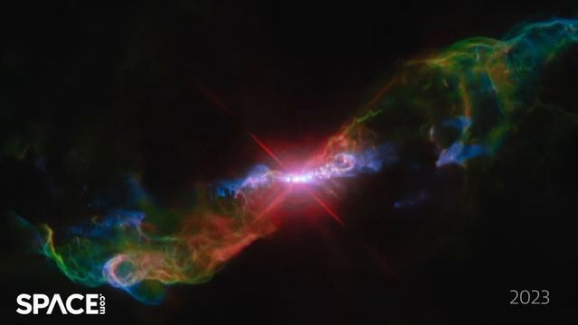 «Хаббл» запечатлел потоки светящегося газа, вырывающиеся в космос