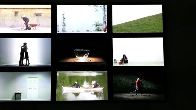 These Bill Viola video pieces at Blain Southern were sublime. The Chapel of Frustrated Actions and Futile Gestures (2013), from which the exhibition derives its name, incorporates a grid of nine horizontal screens that depict figures perpetually repeating various activities. Presented in real time, we witness a man pulling a cart up a hill, only to let it roll back down again as soon as he reaches the top -- a palpable reference to Albert Camus' The Myth of Sisyphus, a philosophical essay based on the Greek myth, which calls into question the significance of our daily accomplishments. In another screen, we observe a man continuously digging and refilling a hole in the ground at night. The central panel shows a glass bowl being filled with water from a jug, which slowly seeps out through a crack in the glass until it has emptied -- at which point the bowl is then refilled. Every action is repeated in ritualistic fashion, gradually and purposefully, rendering each unsuccessful endeavour all the more poignant. http://www.blainsouthern.com/exhibitions/2013/bill-viola-frustrated-actions-and-futile-gestures