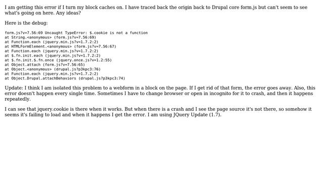 Drupal: $.cookie is not a function from form.js with block cache