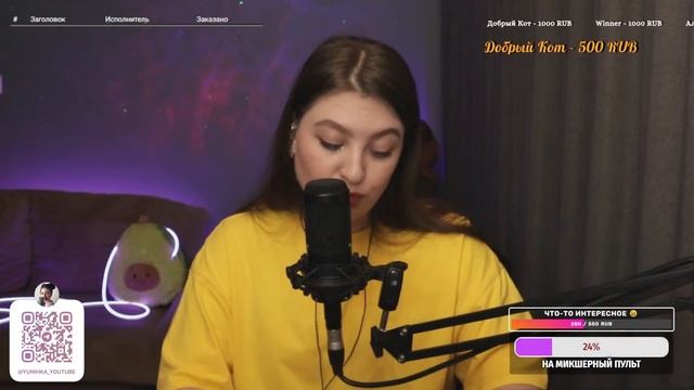 Привет, дорогой зритель! Меня зовут Юля, и я очень рада тебя видеть здесь на моем канале) Сегодня я провожу прямую трансляцию и поэтому прошу Тебя поддержать меня ну и конечно же петь песни вместе со мной Ссылка на донат ИЛИ если вы хотите увидеть свое сообщение на экране - https://www.donationalerts.com/r/yunihka Если просто хотите поддержать мое творчество номер карты СБЕР: 4276550062989176 Заказ песни вне очереди 100 р. ЧТО Я МОГУ СПЕТЬ ДЛЯ ТЕБЯ смотри тут https://disk.yandex.ru/i/YTq-QLQ9VLuGvA https://www.streamersonglist.com/t/yliannohka/songs?f=New Вы так же можете получить сигну написав в чат "ХОЧУ СИГНУ" и забирать ее в телеграмме Так же сигна делается автоматически всем, кто отправил донат Хочу сказать огромное СПАСИБО всем донатерам и просто случайным зрителям! Я надеюсь Вам все понравится ❤️ ИЩИТЕ МЕНЯ ЗДЕСЬ: инстаграм (запрещен в РФ): https://www.instagram.com/yunihka/ (@yunihka) вк: https://vk.com/yunihka Телеграмм: https://t.me/yunihka_youtube #стрим#караоке#разговоры#живойзвук#вокал#живойвокал#поем#петь#музыка#поемкараоке#петькараоке#cover#music#стрим#прямойэфир#караоке Не забудь поставить пальчик вверх а я для тебя сделала тайм коды ❤️ С вас лайк с меня таймкоды 1. 00:00 Заставка 2. 01:36 Начало стрима 3. 04:37 - 09:16 Леонид Агутин, Владимир Пресняков - Аэропорты ✈️ 4. 15:38 - 21:01 Земляне - Трава у дома 5. 24:06 - 28:01 Рауф и Фаик - Колыбельная ❤️ 6. 31:54 - 35:03 Мурат Насыров - Я это ты ❤️ 7. 42:09 - 45:38 Ария - Потерянный рай ✨ 8. 53:30 - 56:16 Братья Гримм - Ресницы 9. 1:00:34 - 1:03:59 Город 312 - Вне зоны доступа ❌ 10. 1:05:43 - 1:08:59 Рауф и Фаик - Вечера 11. 1:12:59 - 1:16:36 Валерий Меладзе - Разведи огонь 12. 1:21:34 - 1:25:44 Согдиана - Вспоминай меня 13. 1:28:07 - 1:33:43 Би-2 - Молитва 14. 1:40:22 - 1:43:57 Николай Носков - На меньшее я не согласен 15. 1:45:43 - 1:49:17 Boney M. - Sunny ☀️ 16. 2:03:15 - 2:06:29 Звери - Районы, кварталы 17. 2:10:23 - 2:14:26 Кино - Перемен 18. 2:18:00 - 2:22:40 Юта - Жили - были 19. 2:26:34 - 2:30:00 Lx24 - Уголек 20. 2:33:53 - 2:37:10 А-студио - Улетаю ✈️ 21. 2:40:19 - 2:44:09 ДДТ - Это все 22. 2:46:44 - 2:50:44 Агата Кристи - А на войне 23. 2:53:33 - 2:57:52 - Звери - До скорой встречи 24. 3:03:28 - 3:06:15 Танцы Минус - Половинка 25. 3:08:24 - 3:12:07 Жуки - Батарейка 26. 3:15:34 - 3:18:59 Дмитрий Маликов - Кто тебе сказал 27. 3:21:57 - 3:25:13 Les rois du monde» из мюзикла «Ромео и Джульетта» - Короли ночной вероны 28. 3:28:53 - 3:35:18 Ария - Я свободен 29. 3:42:53 - 3:46:12 Аида Ведищева - Колыбельная медведицы
