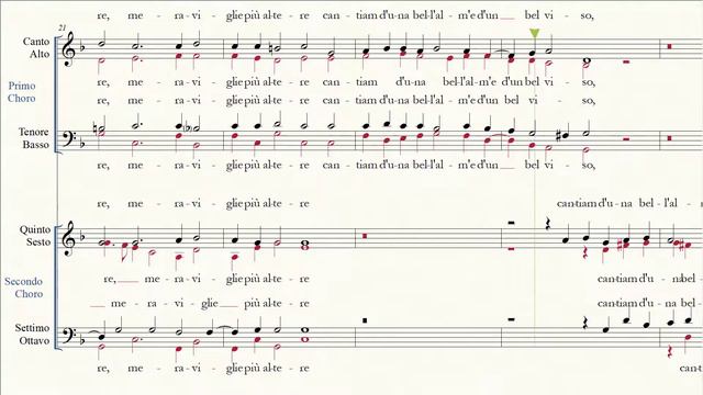 Brano a doppio coro SATB di Cristofano Malvezzi, lucchese naturalizzato fiorentino, su testo di Ottavio Rinuccini. Trascritto a scopo didattico, qui le singole voci evidenziate per lo studio: Primo coro: soprano: https://youtu.be/4OThbboqivc alto: https://youtu.be/VIcyMDqNN-o tenore: https://youtu.be/3K713azFLLQ basso: https://youtu.be/_JTpZAX-1u0 Secondo coro: soprano: https://youtu.be/w1nALyJkhd0 alto: https://youtu.be/QMqljOYKiFM tenore: https://youtu.be/3VZr-90Esac basso: https://youtu.be/ZnNaxlxHQp0 Qui tutte le voci egualmente amplificate: https://youtu.be/yjd9iri41gM