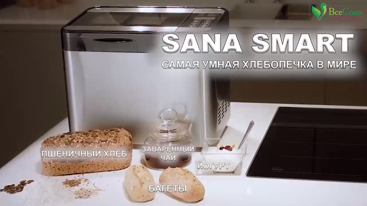 Хлебопечка Sana Smart Bread Maker: http://vsesoki.ru/collection/hlebopechki/product/hlebopechka-sana-smart-standart?rtube Видеоролик от 05.08.2017 http://vsesoki.ru?rtube – ООО «Все Соки», официальный импортёр и российский дистрибьютор техники Sana и других лидеров в производстве техники для здорового образа жизни. ☎ Заказать умные хлебопечки, домашние мельницы, шнековые соковыжималки, профессиональные блендеры, автоматические проращиватели, надёжные дегидраторы, кухонные аксессуары и другую технику для здорового питания с бесплатной доставкой по РФ: +7 (495) 134-11-44 – в Москве +7 (812) 389-33-66 – в Санкт-Петербурге ⠀8 (800) 33-33-627 – по всей России (звонок бесплатный!) Сюрприз для подписчиков! Подпишитесь на наш канал https://rutube.ru/video/person/1735077 и при оформлении заказа на сайте «Все Соки» используйте секретное слово РУТУБ. Наглядная инструкция по использованию кодового слова: https://clck.ru/EtNNi