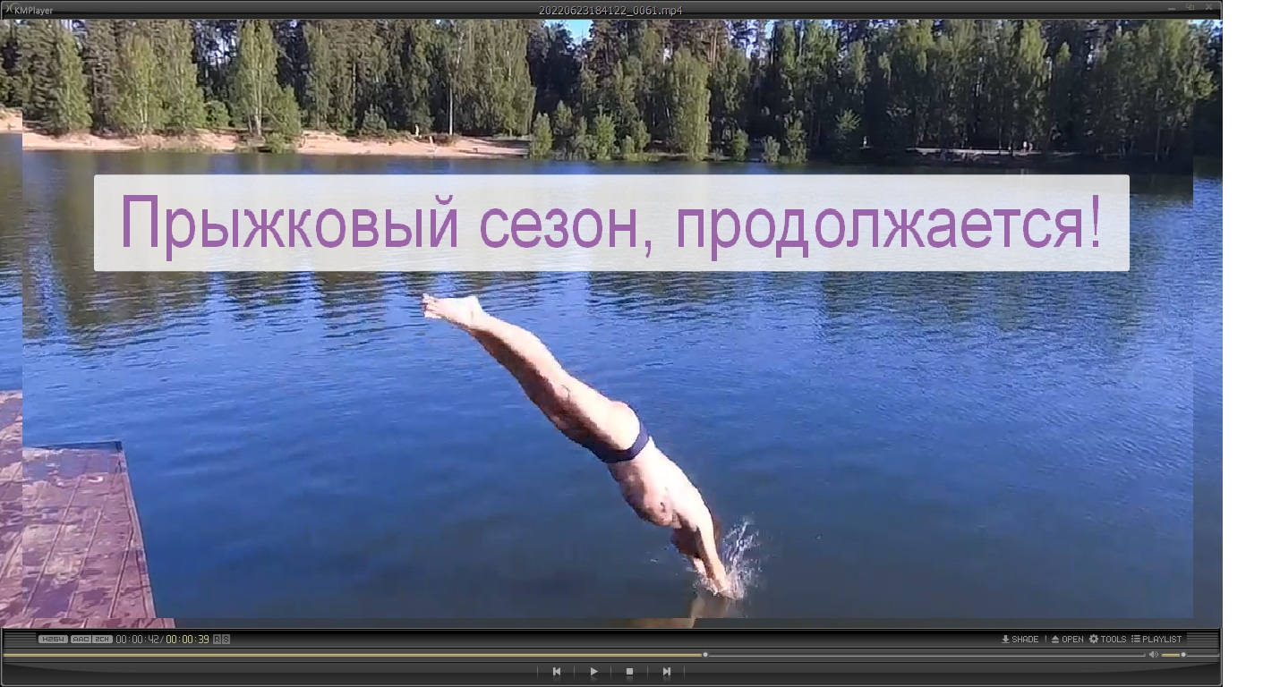 Прыжки в воду с пирса на Южном озере в Черноголовке. Июнь 2022 года.
