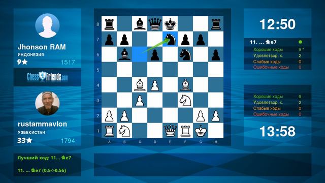 Chess Game Analysis: rustammavlon - Jhonson RAM : 1-0 (By ChessFriends.com)