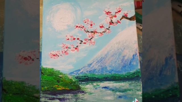 Sakura and Mount Fuji. ? ? Acrylic painting. ? Сакура и гора Фудзияма.? ? Акриловая живопись. ??? #shorts #video #shortvideo #art #love #painting #sakura #fuji #nature #fun