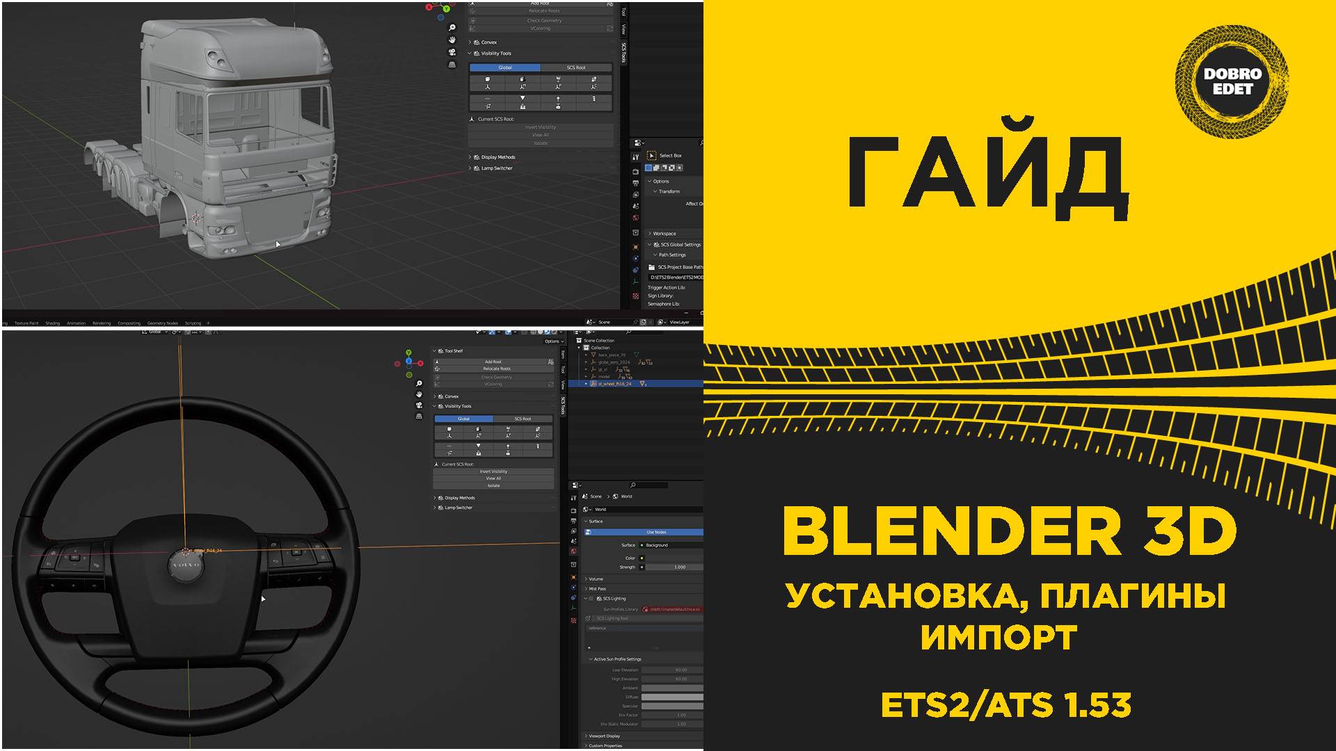 ✅ГАЙД УСТАНОВКА BLENDER 3D ДЛЯ РАБОТЫ С ETS2 и ATS 1.53 ✅Подписаться на мой канал● https://goo.gl/pFdnLk ✅Поддержать Канал PengWin https://www.youtube.com/@PengWin737 ====================================================== ●Программа Blender 3D https://www.blender.org/ ●Плагины Для Блендер ●SCS Blender Tools https://modding.scssoft.com/wiki/Documentation/Tools/SCS_Blender_Tools/Download ●Conversion Tools https://modding.scssoft.com/wiki/Documentation/Tools/Conversion_Tools#Download_.26_Installation ●ConverterPIXWrapper https://github.com/simon50keda/ConverterPIXWrapper/releases ●SCS Extractor 1.50 + https://sharemods.com/ivc20o0z6plg/scs_extractor_1.50.rar.html ====================================================== ✅По вопросам РЕКЛАМЫ - https://vk.com/topic-151331808_35890784 Это Видео - https://youtu.be/LnlR9nsJvKw ●Группа ВК -https://goo.gl/8TZaGy ●Я в ВК -https://vk.com/dobrovolskiy36 ●Я в Steam - Starangel36 ●Рутуб https://rutube.ru/channel/22815033/ ●Телеграмм https://t.me/dobroYT #ETS2 #eurotrucksimulator2 #eurotruck #mapcombo #combomap #trucksimulator #ets2game #truck #euro #eurotrucks #ets21.53#1.53#прохождениенарусском #топканал #доброедет #добро #games #game #стрим #stream #ets2mods #truck #simulator #ets2simulator #ats #america #ATS1.46 #dlcwashington #oregon #ets2update1.46 #груз #грузовик #r3 #суроваяроссия #суроваяроссияr3 #ets2news #ets2review #promods