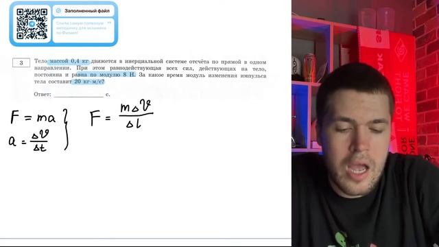Тело массой 0,4 кг движется в инерциальной системе отсчёта по прямой в одном направлении - №20767