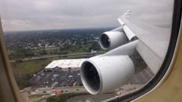 Вид из окна салона пассажирского самолета Боинг 747 посадка Нью-Йорк Америка США