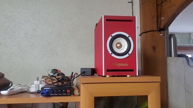 Акустическая система "Обертон". Локация: д. Петропавловка, Красноярский край. Корпус 16 мм мдф, лабиринт, щелевой фазоинвертор. Динамик Aiyima (max. 30 watt), 4 ом, 50-20000 Hz., 88+_3 db. Приносим извинения за кота на заднем плане) Звук записан на камеру телефона.