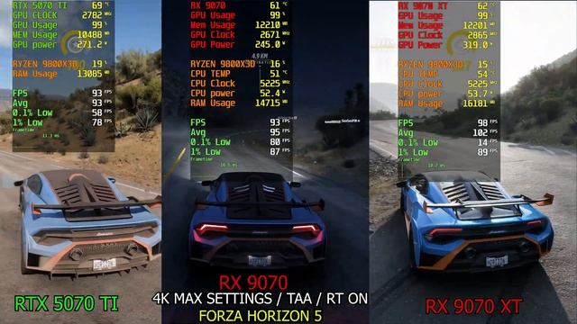 🔧SPECS🔧 ► CPU: AMD Ryzen 7 9800X3D ► GPU: AMD Radeon RX 9070 XFX | RTX 5070 TI GIGABYTE WINDFORCE | RX 9070 XT POWER COLOR HELLHOUND ► RAM: CORSAIR DOMINATOR PLATINUM RGB DDR5 RAM 32GB (2x16GB) 6000MHz ► Motherboard: ASUS ROG Crosshair X670E Hero ► SSD: Samsung 980 PRO M.2 NVMe SSD (2TB) x2 ► SSD: Samsung 990 PRO Heatsink NVMe M.2 SSD with heat sink, (4 TB) X1 ► CPU Cooler:ASUS ROG RYUJIN III 360 ► PSU: ASUS 1200W ROG Thor Platinum II PSU, Double Ball Bearing Fan, Fully Modular, 80+ Platinum, RGB Lighting, OLED Display 🔧Recording PC (Specs)🔧 ► CPU:AMD Ryzen 5 7600X ► GPU:Gigabyte RTX 5070 TI WINDFORCE OC ► RAM:Crucial Pro DDR5 RAM 32GB Kit (2x16GB) 6000MHz CL36 ► Motherboard:Gigabyte X670 AORUS ELITE AX Motherboard ► SSD: Crucial P3 Plus SSD Gen4 (2TB) ► CPU:Cooler:Cooler Master Hyper 212 Halo CPU Air Cooler ► PSU:Corsair RM1000x 80 PLUS Gold Fully Modular ATX 1000 Watt Power Supply ►Capture Card: Elgato 4K X – Capture Up to 4K144 with Ultra-Low Latency ►Main Monitor : ASUS ROG Swift OLED PG32UCDM gaming monitor ― 32-inch 4K QD-OLED panel, 240Hz ⏰ Timestamps ⏰ INTRO - 0:00 BIOS - 0:23 WEIGHT - 0:29 LENGTH / WIDTH -0:33 DISPLAY OUTPUTS - 0:41 GPU SPECS - 0:46 Power Requirements - 1:04 CARD FEATURES - 1:20 CARD COMPARISON RTX 5070 TI | RX 9070 | RX 9070 XT - 2:00 PC SPECS - 2:22 PERFORMANCE BIOS SOUND TEST - 2:27 PERFORMANCE BIOS | TEMPS | POWER DRAW | FAN SPEED- 2:36 SILENT BIOS SOUND TEST - 3:22 QUIET BIOS | TEMPS | POWER DRAW | FAN SPEED - 3:33 FORZA HORIZON 5 | RTX 5070 TI | RX 9070 | RX 9070 XT - 4:17 THE LAST OF US PART 2 REMASTER | RTX 5070 TI | RX 9070 | RX 9070 XT - 5:08 ATOMFALL | RTX 5070 TI | RX 9070 | RX 9070 XT - 5:54 GTA 5 ENHANCED | RTX 5070 TI | RX 9070 | RX 9070 XT - 6:40 CONCLUSION AND DO I RECOMMEND THIS GPU? - 7:28