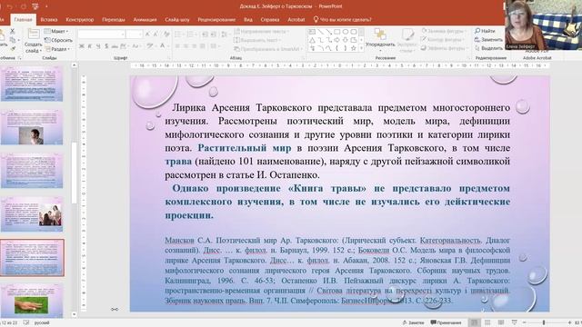 Доклад Е.И. Зейферт "Дейктические проекции в стихотворении Арсения Тарковского "Книга травы"