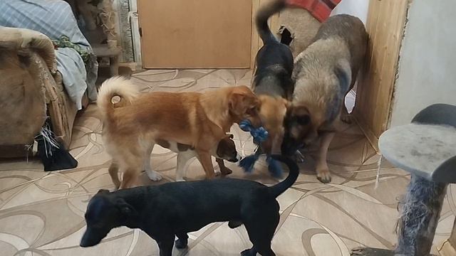 Фунтик играет со всеми в доме