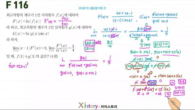 F 여러가지 미분법, 일등급(115~119), 미적분, (고2, 2021년 자이스토리)