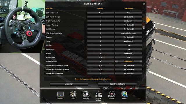 Setting Keys and Buttons Euro truck simulator 2 ETS2 use Steering Wheel Logitech g29
