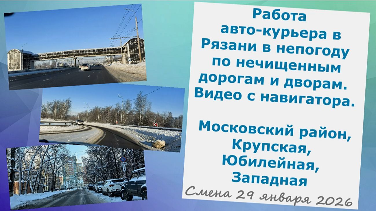 Работа авто-курьера в Рязани в непогоду по нечищеным дорогам и дворам. Московский район, Крупская, Западная, Юбилейная. Видео с навигатора с моим комментированием обстановки и работы в этот день. Как вам такой формат видео? Если вам нравятся мои видео, я очень рада. Не забудете нажать на подписку , если еще не подписаны, и на колокольчик, чтобы не пропустить новые видео на канале, а так же на ракету 🚀, если смотрите видео на рутубе - это важно для развития канала. Плейлисты: Жизнь магаданцев в Рязани https://youtube.com/playlist?list=PLOXFdJn8xE45niyZYWNNt98g4rPCZAtCO&si=nVRqlQ3FwEpPjuX1 Изучаем Рязань https://youtube.com/playlist?list=PLOXFdJn8xE447Ow64A6jm_pMN3VsPw-sM&si=Cgx02FO3kR9kBxBm Наши пенсионерские путешествия https://youtube.com/playlist?list=PLOXFdJn8xE45WRX3lLoqOtiW-UpgZY3UK&si=BJspZKHR-v2bwad5 Дачные хлопоты https://youtube.com/playlist?list=PLOXFdJn8xE46sLEbTc3UE61Kd2ZHCLiQa&si=6aey0Qoa7GxN8oCU Мой Магадан https://youtube.com/playlist?list=PLOXFdJn8xE45ECLh-BZsmazbk73IDlRQZ&si=6_ccHwKdAX9IZKbX Мои куклы https://youtube.com/playlist?list=PLOXFdJn8xE45fcSFtp4toJiXn2R8Qd3GX&si=M6QcXjlDmp4ShpG9 Мое шитье и творчество https://youtube.com/playlist?list=PLOXFdJn8xE4772vwWgX8SOxNi6QY0HiI7&si=DztFlRQLQSTYEdYN *********************************************************************** Если желаете поблагодарить меня за мою работу, поддержать мой канал и мое хобби - карта Сбербанк: 2202 2067 0645 4373 - буду очень признательна всем, кто ценит этот нелегкий труд! QR-код для перевода онлайн Сбербанк в конце почти каждого видео. Спасибо за любую поддержку! С уважением, Анжелина. ************************************************************************* ✅Канал рутуб rutube.ru/.../26492427/ ✅Дзен dzen.ru/...f53aef1fff... ✅Все видео ВКонтакте vk.com/club226856756 / @anzhelina_jolie_ ✅Моя творческая мастерская в ВК vk.com/...c212000538 ✅Играю в куклы в ВК vk.com/club224828421 ✅Готовим с Джоли в ВК vk.com/club223193761 ✅Телеграмм для общения подписчиков и друзей Анжелина&Компания t.me/...N1Kd0zOTg6 - группа закрытая, стучаться! ✅Телеграмм новостной со ссылками на все публикации t.me/...osim_chaim ✅Телеграмм Шьем с Анжелиной Джоли t.me/sewing_jolie ✅Телеграмм МИР КУКОЛ t.me/...mld4yh_y8d ✅Телеграмм Мода/стиль/идеи/шитье t.me/...dei_sewing ✅Мои публикации на бейбиках про кукольное хобби babiki.ru/...akharchuk/... ✅Основной ютуб www.youtube.com/...ryazan/vid.. ✅Ютуб Шьем с Анжелиной Джоли www.youtube.com/...ie_/videos Кому нравятся мои путешествия и видео-прогулки по разным городам, моя незатейливая кулинария, мое шитье и куклы, видео релакс о нашей дачке и мой жизненный настрой и позитив, которым я делюсь с другими - Я ОЧЕНЬ ЭТОМУ РАДА!