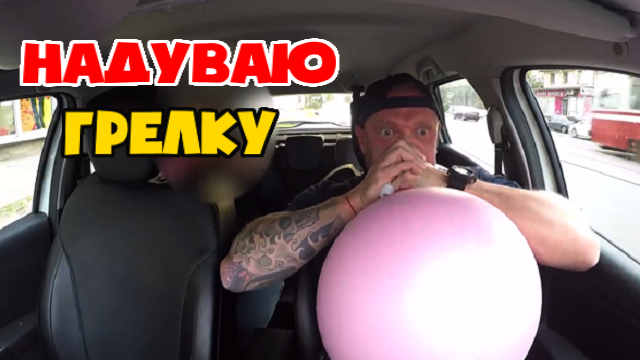 Таксист на спор надувает грелку