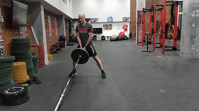 Боковые приседания в ножницы лэндмайн с грифом внизу