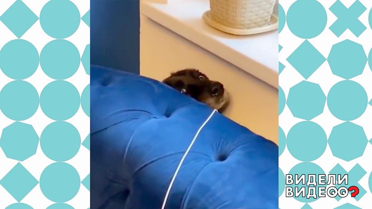 Собака спряталась от грозы за диваном. И как она туда уместилась?