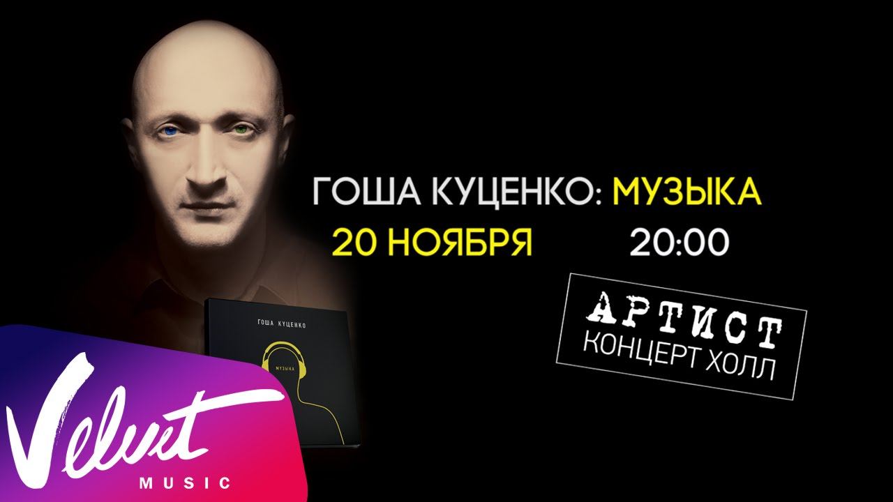 Самые яркие премьеры только на канале Velvet Music: http://bit.ly/1RFnuqn Гоша Куценко. Презентация нового альбома "Музыка" 20 ноября, клуб "Артист". Начало в 20:00 Билеты: http://ponominalu.ru/event/gosha-kucenko http://www.concert.ru/Details.aspx?ActionID=48888 То, что Гоша Куценко, одна из главных персон современного российского кино, давно уже не только актер, но и музыкант — давно не секрет. Приятно удивляет другое: те, кто бывал на его концертах или слушал на фестивалях, знают, что музыка для Гоши это не просто бестолковое хобби на тему «а почему бы мне не спеть», a серьёзное увлечение и даже состояние души. Поющие актеры давно не редкость как за рубежом, так и в России — и неизвестно, где удачных примеров больше, ведь у нас достаточно просто вспомнить Высоцкого или Миронова. Нынешний сольный проект Гоши сложно охарактеризовать одним стилем: эти мужские песни местами лиричны, местами жёстки, на пластинке возникает то арт-рок и фанк, то трип-хоп и эйсид-джаз, a то и даже рэп. Куценко поёт о разном: любви и сексе, о жизни и смерти, о море и лете, но всегда интересно и с душой: «Пришло время, когда моя музыка стала близка многим людям. Мы очень долго готовились к записи — и наконец, рады поделиться материалом с публикой. Теперь нам очень интересно услышать разные мнения о своем творчестве. Уверен, что проект будет развиваться, планы у нас грандиозные». Следи за новинками в наших соц.сетях: Сайт: http://www.velvetmusic.ru YouTube: www.youtube.com/user/velvetmusicru Facebook: https://www.facebook.com/velvetmusic.ru ВКонтакте: http://vk.com/velvet_music Instagram: http://instagram.com/velvetmusic Подпишись: http://bit.ly/1RFnuqn