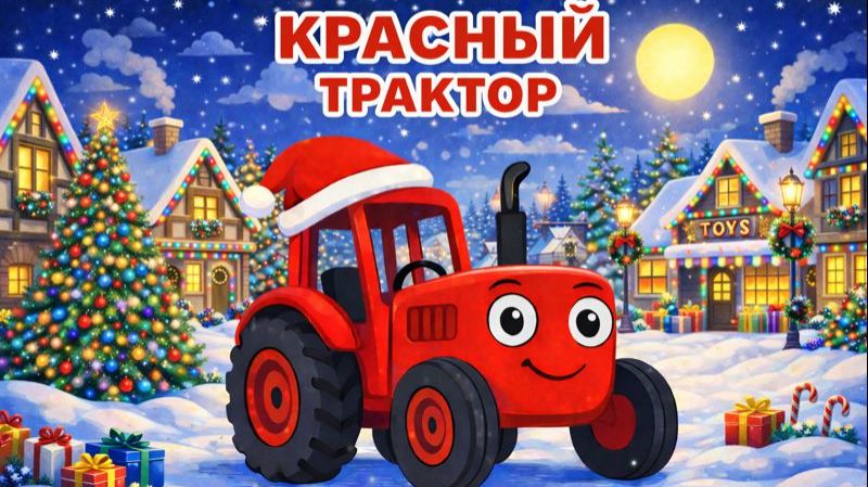 ДЕТСКАЯ ПЕСЕНКА ПРО КРАСНЫЙ ТРАКТОР В РОЖДЕСТВЕНСКУЮ НОЧЬ. ДЕТСКИЙ МУЛЬТИК.