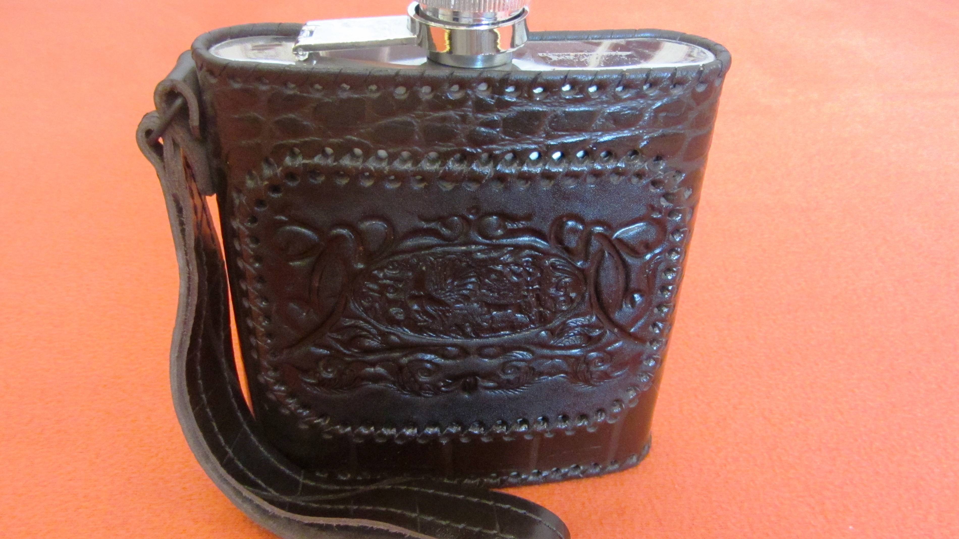 Фляга в кожаном чехле 453,59 мл. (16 унций) ремень для руки