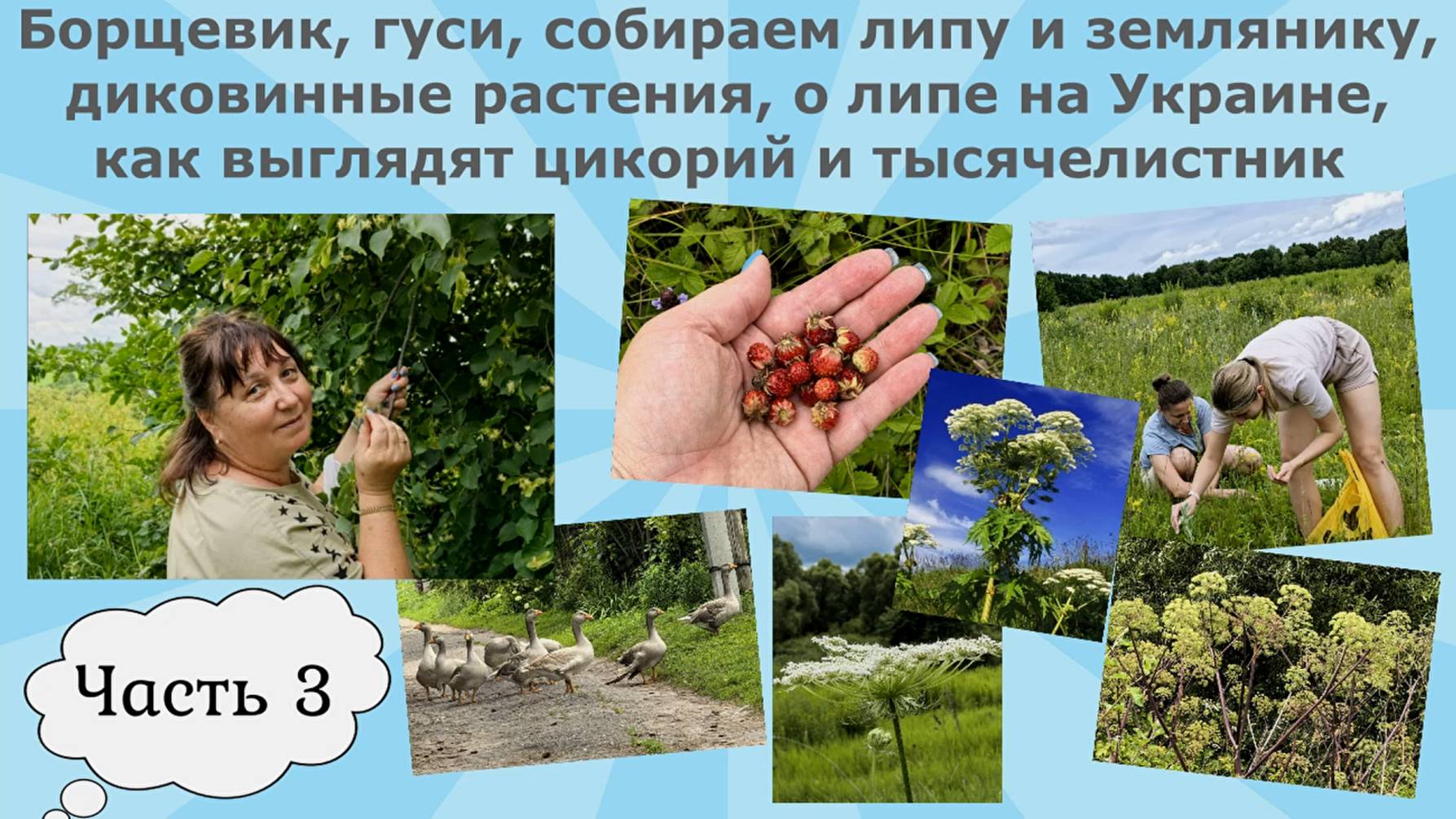 Борщевик,гуси,собираем липу и землянику,диковинные растения,о липе на Украине,цикорий и тысячелистн