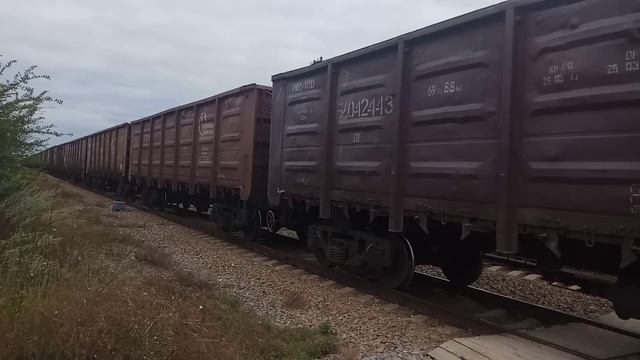 VID_20190802_094745.mp4. 2ТЭ25Км - 0147 с грузовым поездом.
