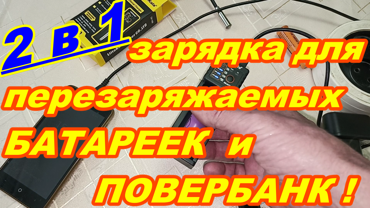 Зарядка для ПЕРЕЗАРЯЖАЕМЫХ БАТАРЕЙ и ПОВЕРБАНК 2 в 1 LiitoKala