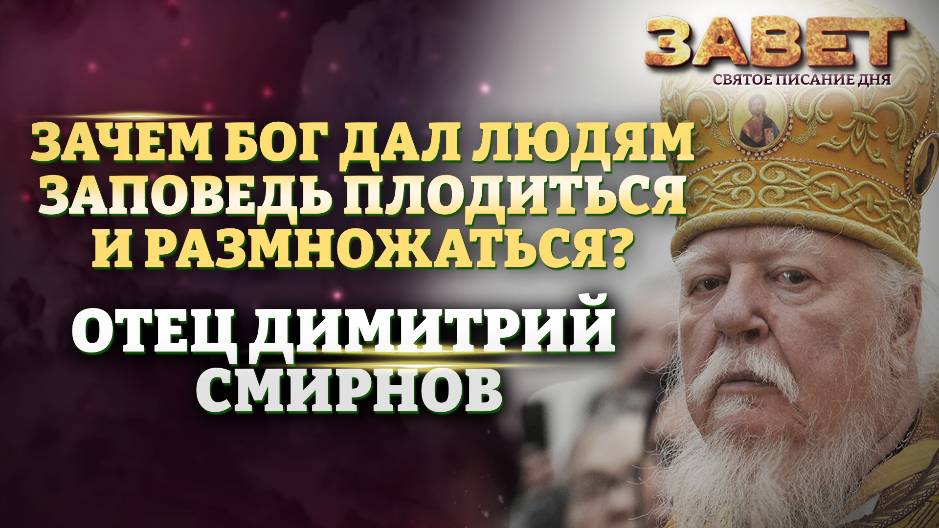 ОТЕЦ ДИМИТРИЙ СМИРНОВ: ЗАЧЕМ БОГ ДАЛ ЛЮДЯМ ЗАПОВЕДЬ ПЛОДИТЬСЯ И РАЗМНОЖАТЬСЯ? ЗАВЕТ