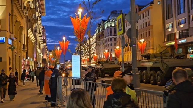 ночная репетиция парада в городе Москва на Тверской улице .