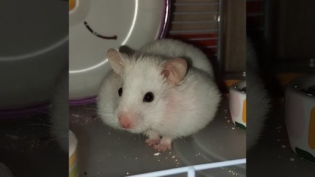 Белый хомяк с огромными щеками