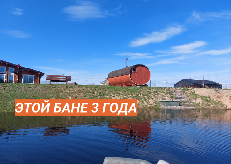 Эту баню-бочку по проекту «Мега» мы построили для моего соседа по даче примерно 3 года назад. Рад, что у меня есть возможность наблюдать за этой баней. И она до сих пор в первозданном виде как снаружи, так и внутри. И это при еженедельном использовании. Покрашена она была Тиккурилой — пока не обновляли. Внутри, к сожалению, обзор не снял, но могу сказать — там ни намёка на потемнения. В планах ещё установить в парную вентиляцию «димасту» и наши фирменные металлические вентиляционные задвижки. Немного модернизировать, так сказать.