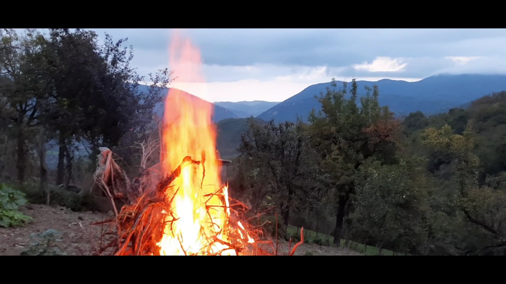 Звуки костра, треск сучков, движение пламени.