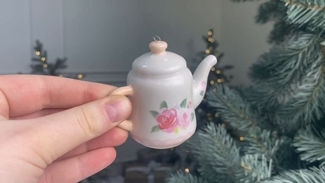 Ёлочная игрушка ЧАЙНИЧЕК 'ВКУС ЛЕТА' с розочками, фарфор, белый, 6 см, F2075-3