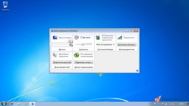 http://www.teachvideo.ru/ - тысячи обучающих роликов на нашем сайте бесплатно! «Центр мобильности Windows» - это приложения для управления основными настройками мобильного компьютера. Центр мобильности позволяет оперативно сменить план электропитания, изменить уровни громкости и подсветки экрана, управлять параметрами синхронизации и настраивать другие параметры.