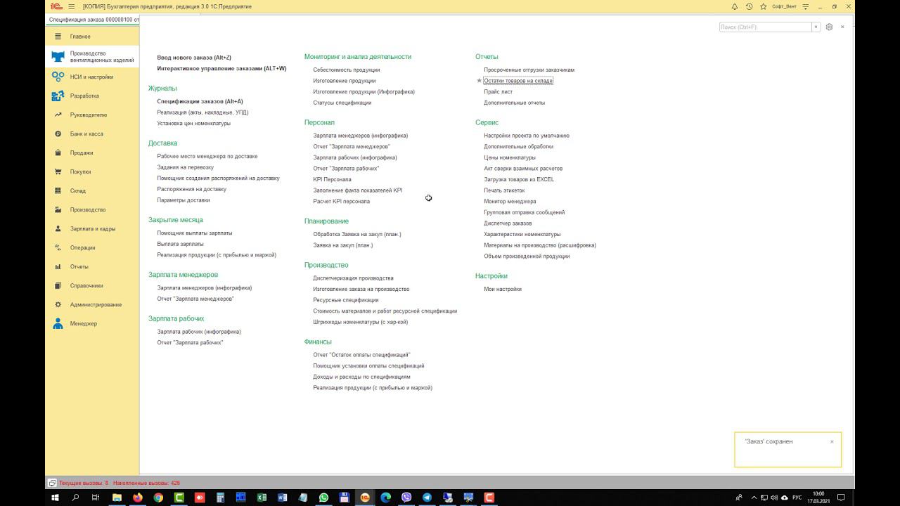 Изготовление на склад Готовой продукции