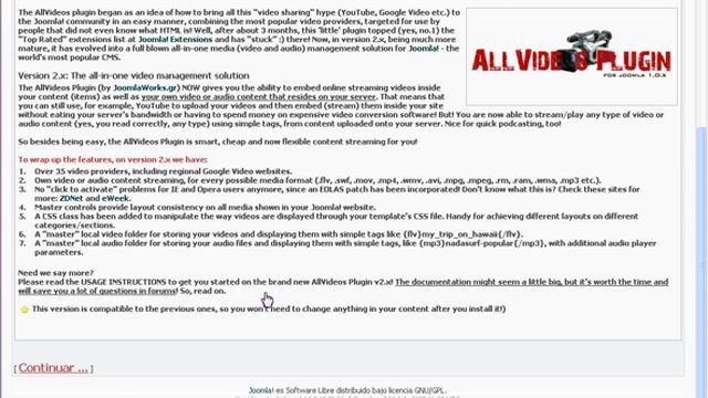 Video tutorial de como instalar el Mambot All Videos Plugin para Joomla