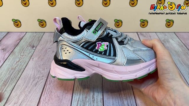 335067 Кроссовки Pasito на шнуровке и липучке с цветными акцентами серебристые