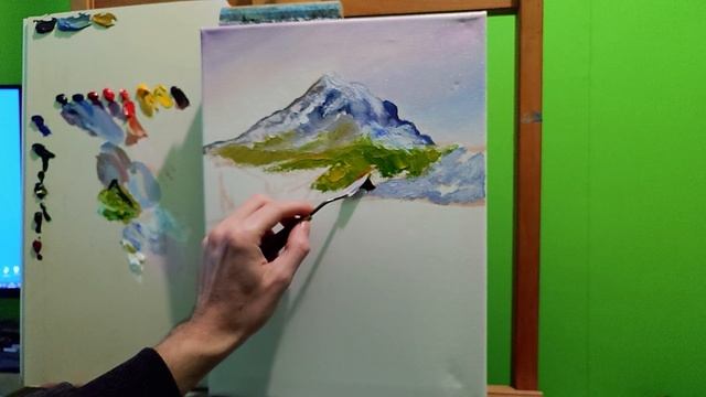 Картина мастихином|Моя первая пастозная работа|Как рисовать горы цветы мастихином #art #мастихин