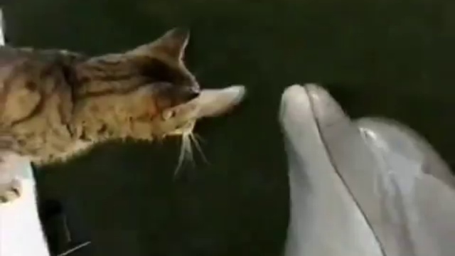 Милый ролик о необычной дружбе между дельфином и котом