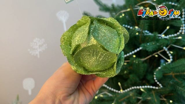332279 Елочное украшение Роза с глиттером зеленое 8см