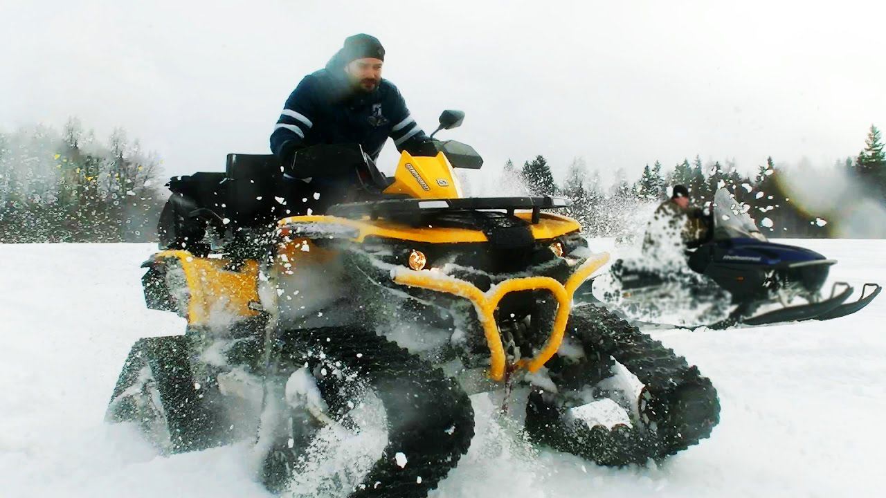 Битва: квадр на гусянке или снегоход?